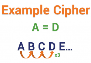 Mari kita ambil contoh dari sebuah halaman buku Caesar yaitu shift cipher, yang mana proses enkripsi akan menggunakan cipher yang sederhana. Coba enkrip sebuah kalimat menggunakan mono-alphabetic yang sederhananya menggantikan setiap potongan huruf dalam kalimat dengan baris huruf ketiga di depannya.